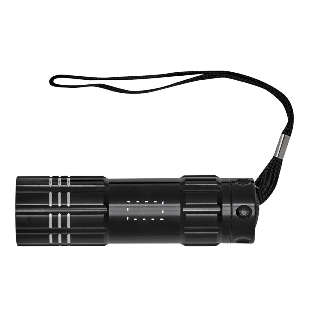 LED-Taschenlampe POWERFUL: 9 lichtstarke weiße LED, gummierter An- und Ausschalter, Handschlaufe, Gehäuse aus Aluminium, batteriebetrieben (3x AAA Batterien enthalten), in Box