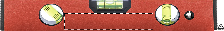 Magnetische Wasserwaage aus recyceltem Aluminium mit dreifacher Libelle (horizontal, vertikal und 45°) und 30 cm Lineal.