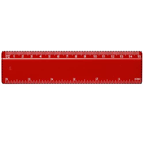 Stabiles Lineal aus recyceltem Kunststoff verfügbar mit Markierungen in Zoll und Zentimeter.