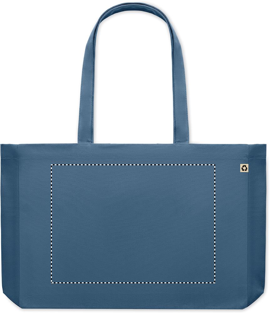 Canvas Einkaufstasche oder Strandtasche aus 50% Baumwolle/50% recycelter Baumwolle mit langen Tragegriffen und Bodenfalte. 280 g/m².
