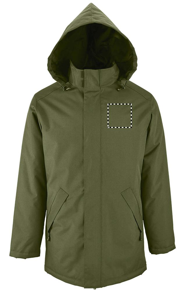 SOL'S ROBYN, Unisex-Jacke mit wattiertem Innenfutter, 100% Polyester - PVC-Beschichtung, Futter und Wattierung: 100% Polyester Oxford 300d, Reißverschluss mit doppeltem Schieber und Knopfleiste mit selbstklemmenden Bändern und verdeckten Druckknöpfen, Kapuze im Kragen, fleecegefütterter Innenkragen, 2 Reißverschluss-Außentaschen mit Patten, 1 Innentasche, Manschettenverschlüsse. Zur Größenanpassung beachten Sie bitte die Größentabelle im Abschnitt Produktdokumentation.