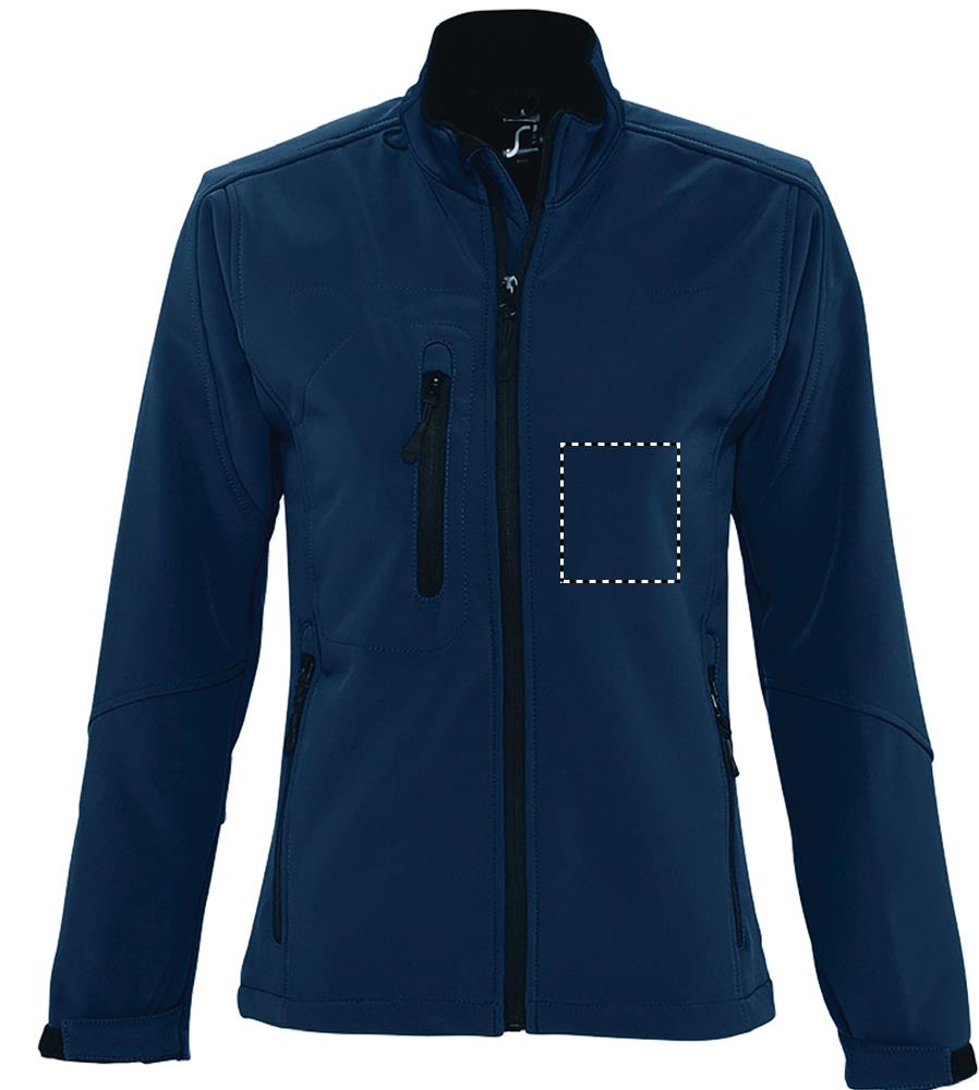 SOL'S ROXY Damen Softshell-Jacke aus technischem Gewebe. Wasserdicht und atmungsaktiv. Gut verarbeitete Ärmel und figurbetonender Schnitt für optimalen Komfort. 2 Seitentaschen mit Reißverschluss, 1 Brusttasche mit Reißverschluss, verstellbarer Kordelzug am Saum, Ärmelbündchen mit Klettverschluss, Microfleece-Futter, Tasche für Mobiltelefon. Material: SOFT SHELL 340g/m², 3lagig, 94% Polyester - 6