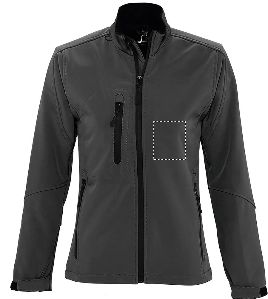 SOL'S ROXY Damen Softshell-Jacke aus technischem Gewebe. Wasserdicht und atmungsaktiv. Gut verarbeitete Ärmel und figurbetonender Schnitt für optimalen Komfort. 2 Seitentaschen mit Reißverschluss, 1 Brusttasche mit Reißverschluss, verstellbarer Kordelzug am Saum, Ärmelbündchen mit Klettverschluss, Microfleece-Futter, Tasche für Mobiltelefon. Material: SOFT SHELL 340g/m², 3lagig, 94% Polyester - 6