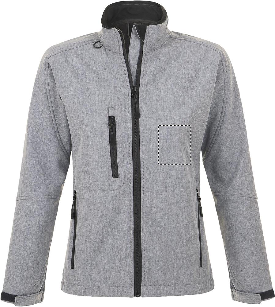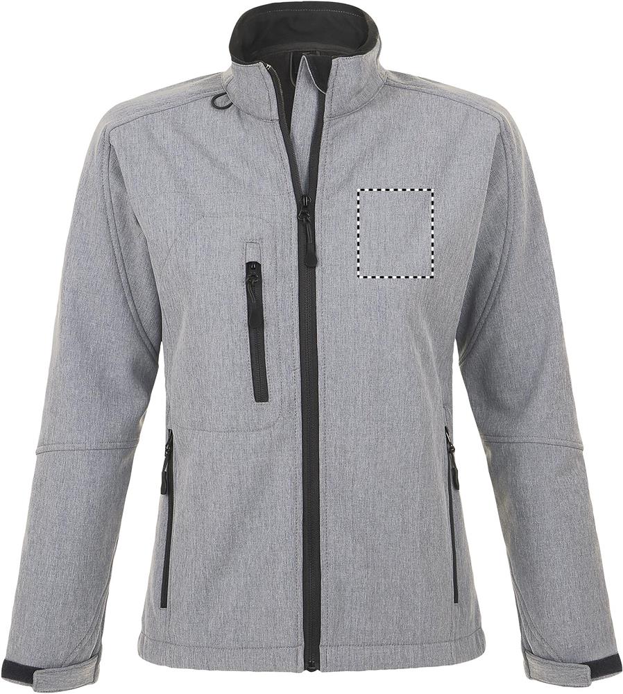SOL'S ROXY Damen Softshell-Jacke aus technischem Gewebe. Wasserdicht und atmungsaktiv. Gut verarbeitete Ärmel und figurbetonender Schnitt für optimalen Komfort. 2 Seitentaschen mit Reißverschluss, 1 Brusttasche mit Reißverschluss, verstellbarer Kordelzug am Saum, Ärmelbündchen mit Klettverschluss, Microfleece-Futter, Tasche für Mobiltelefon. Material: SOFT SHELL 340g/m², 3lagig, 94% Polyester - 6