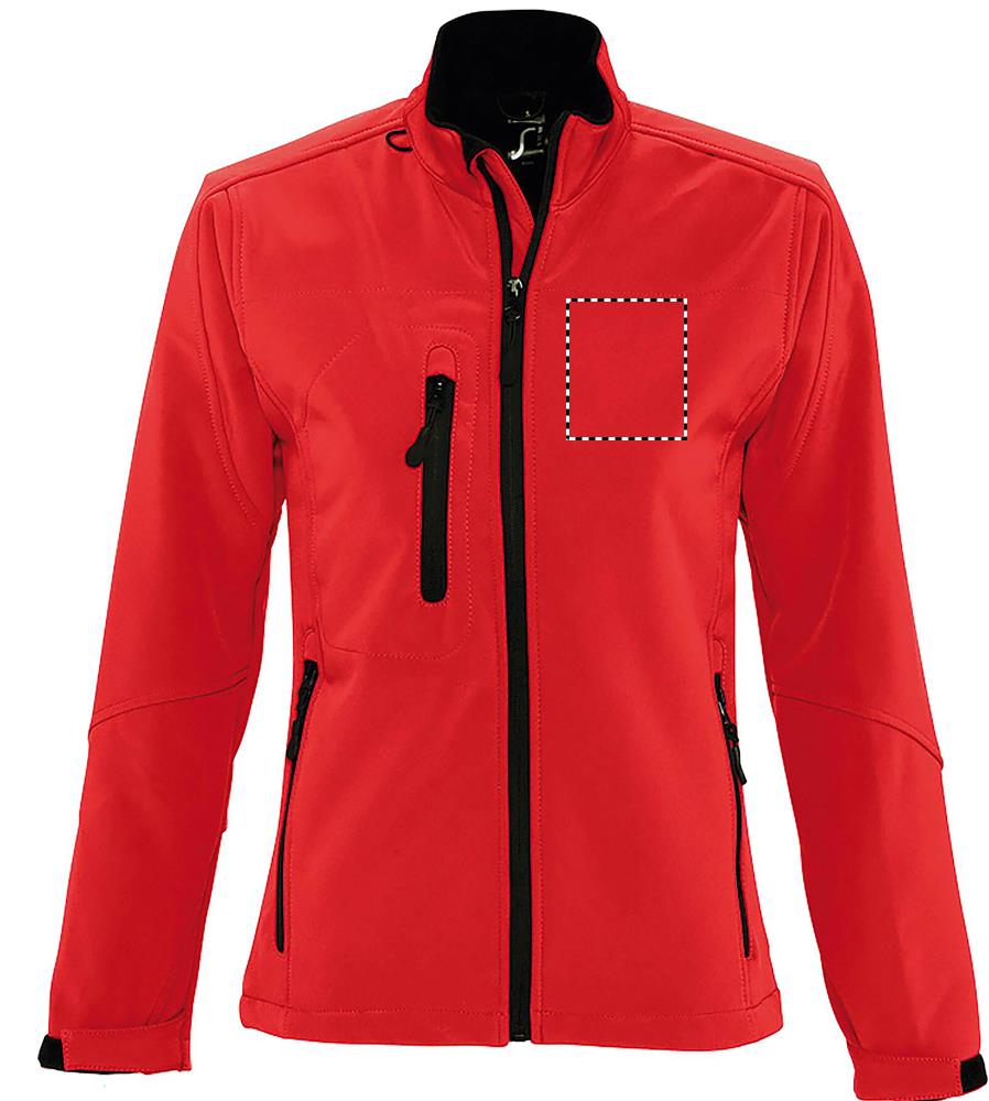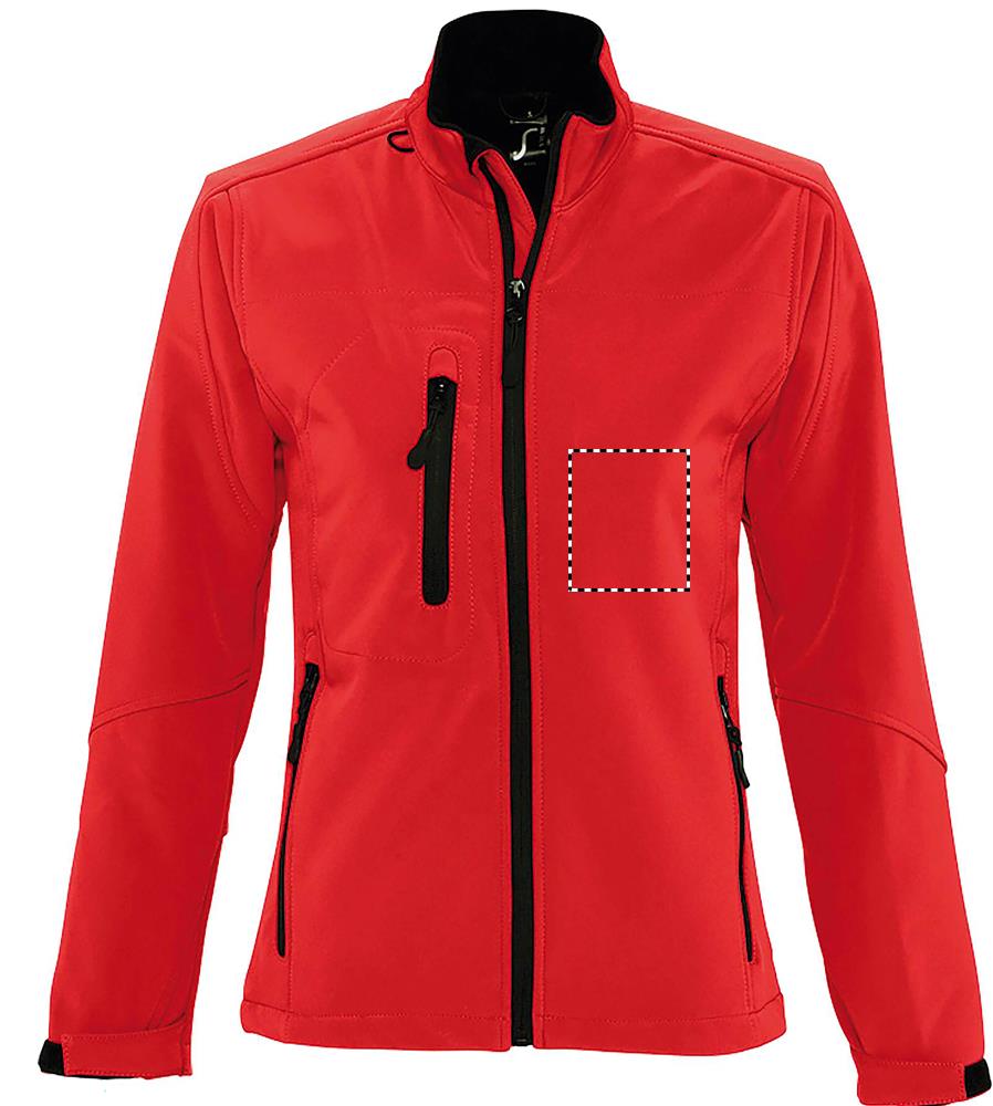 SOL'S ROXY Damen Softshell-Jacke aus technischem Gewebe. Wasserdicht und atmungsaktiv. Gut verarbeitete Ärmel und figurbetonender Schnitt für optimalen Komfort. 2 Seitentaschen mit Reißverschluss, 1 Brusttasche mit Reißverschluss, verstellbarer Kordelzug am Saum, Ärmelbündchen mit Klettverschluss, Microfleece-Futter, Tasche für Mobiltelefon. Material: SOFT SHELL 340g/m², 3lagig, 94% Polyester - 6
