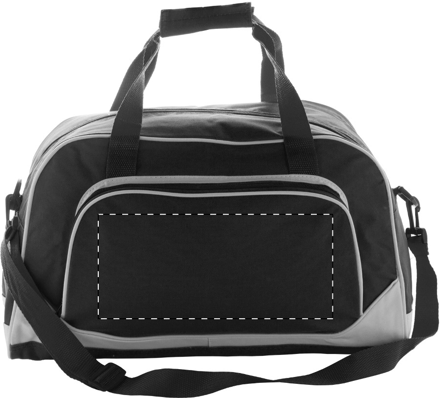 Sporttasche mit zusätzlichem Reißverschlussvorfach, verstellbarem Schultergurt und Griffe mit Klettverschluss, Material: 600D Polyester.