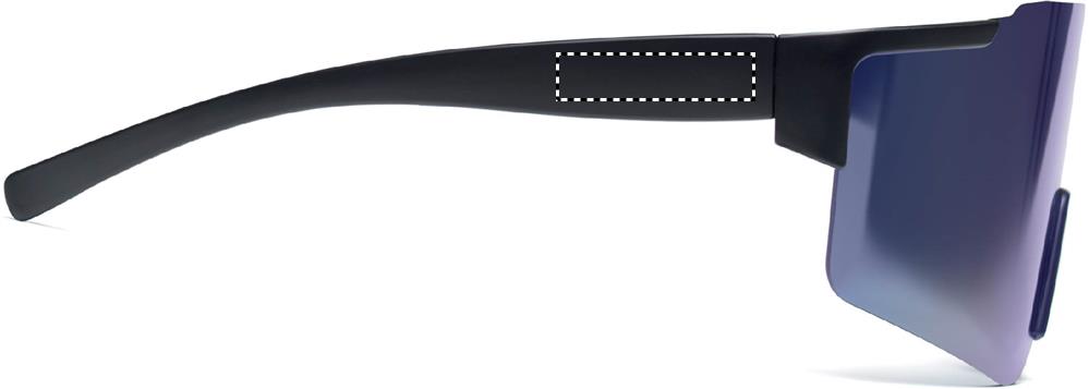 Sport-Sonnenbrille mit verspiegelten Gläsern und schwarzem Rahmen. UV400-Schutz.