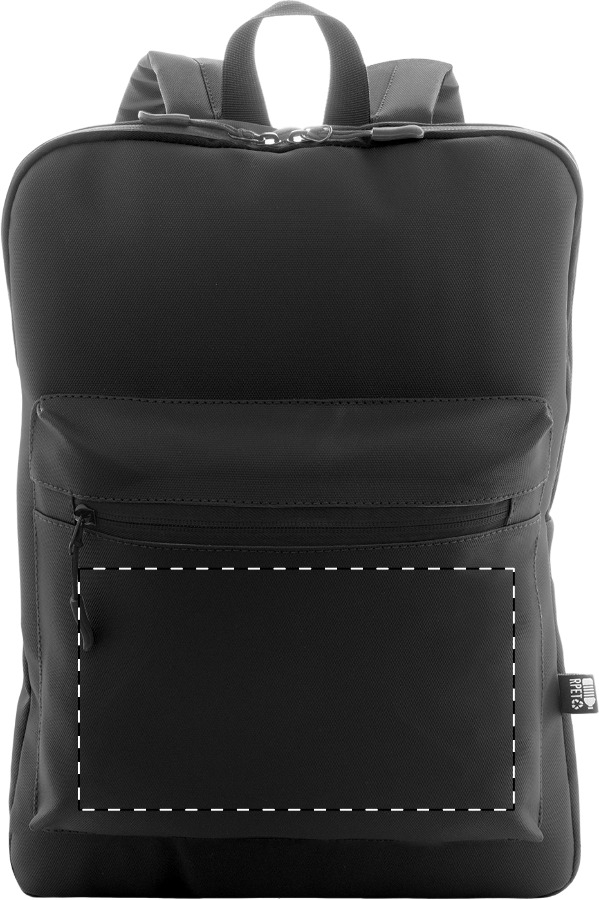 Wasserdichter, schlanker RPET-Laptop-Rucksack mit Reißverschlussfach für den Laptop (15") und Reißverschlusstasche vorne. Mit gepolstertem Rücken und Schultergurten. Material: PU-beschichtetes 600D RPET-Polyester. Mit RPET-Label.