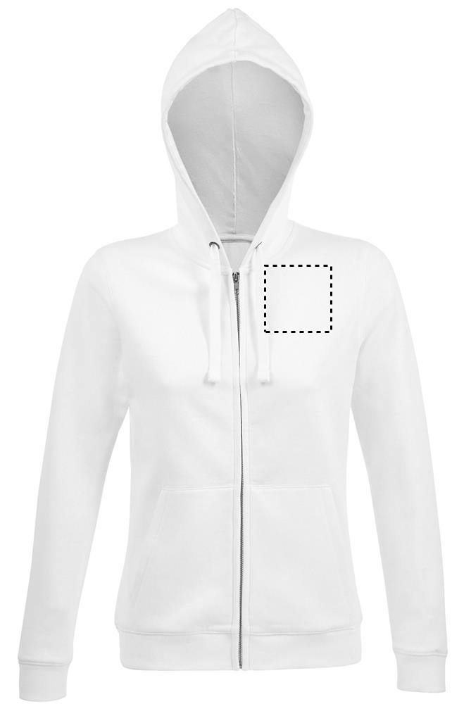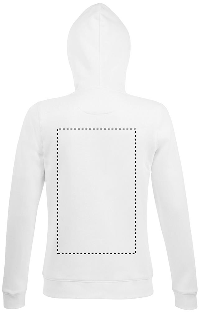 SOL'S SPIKE WOMEN. Damen Hoodie/Kapuzenjacke mit durchgehendem Reißverschluss. 80% ringgesponnene Baumwolle - 20% Polyester, angeraute Innenseite. Außen: 100% Baumwolle FLEECE 280 LSF (Low Shrinkage Fabric). Angesetzte Ärmel, 2 Känguru-Taschen auf der Vorderseite, geschnitten und genäht, Gefütterte Kapuze mit Ton-in-Ton-Kordelzug, Rippenbündchen am Saum und an den Ärmeln 2x2. Halbmondpasse auf der Krageninnenseite, Nackenband auf der Krageninnenseite, YKK-Reißverschluss. OEKO-TEX®. Verkauf nur mit Druck.