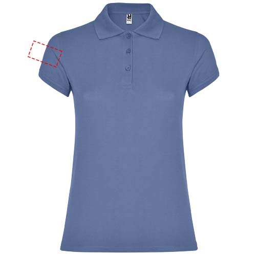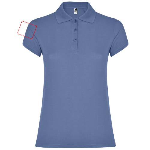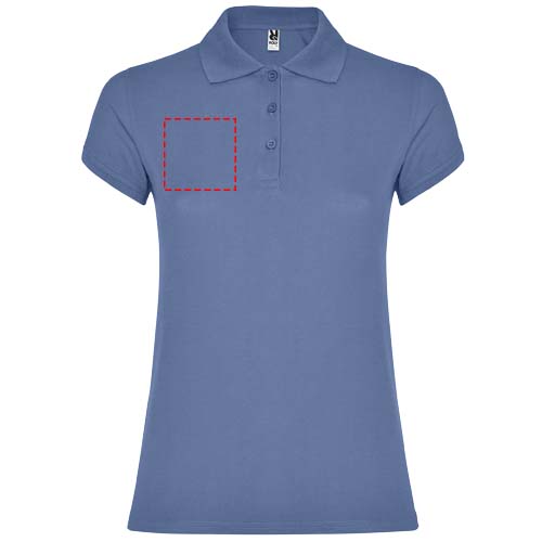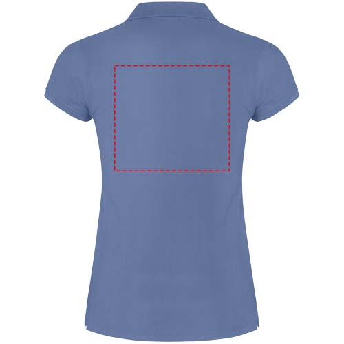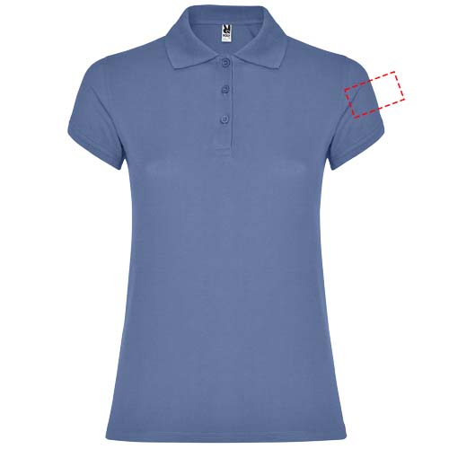 Kurzärmeliges Poloshirt für Damen. Verstärkte und verdeckte Nähte am Innenkragen. 1x1 Rippstrickbündchen an Ärmeln und Kragen. Seitennähte. 3-Knopfleiste und Seitenschlitze. Optionale Tasche. Herausnehmbares Etikett. Das Modell ist 179 cm groß und trägt Größe S.