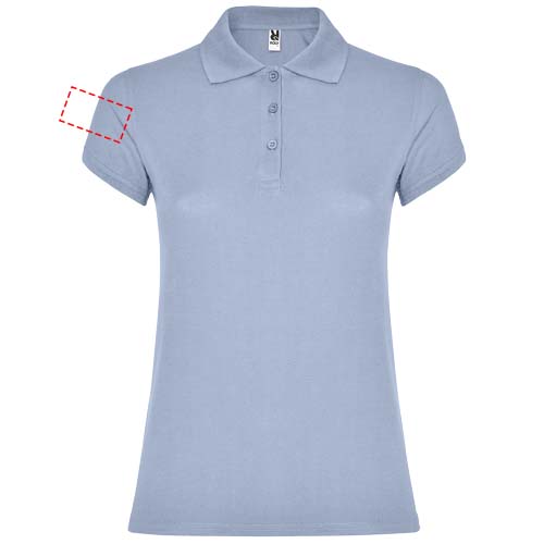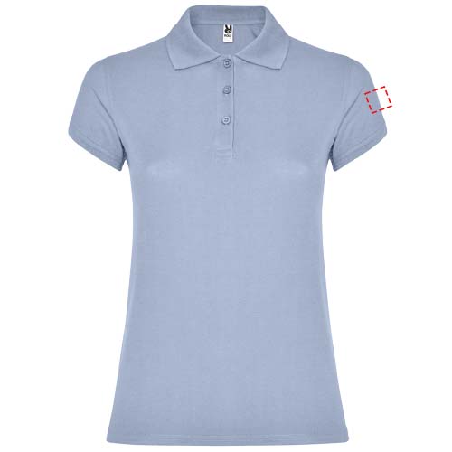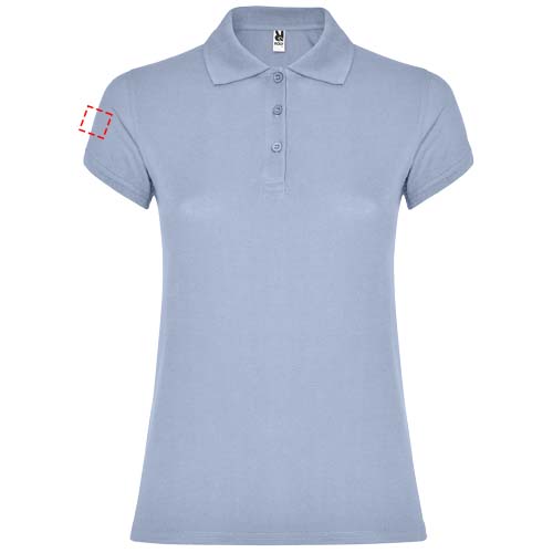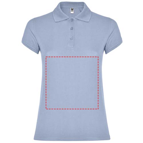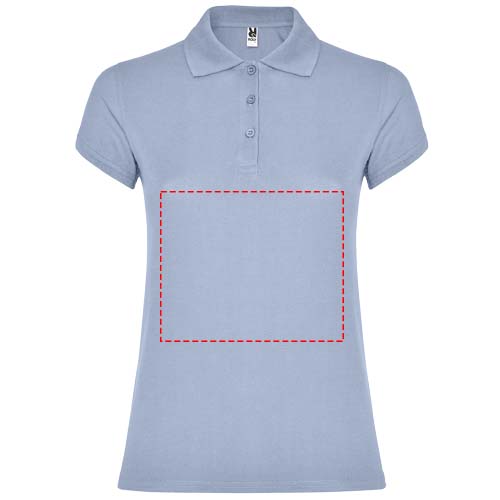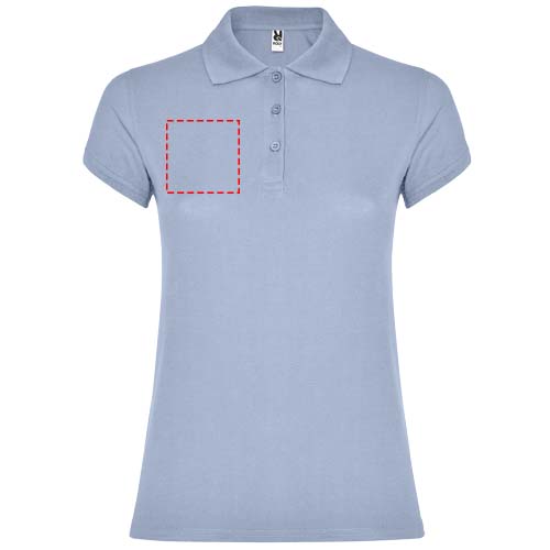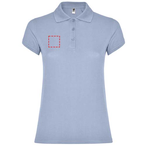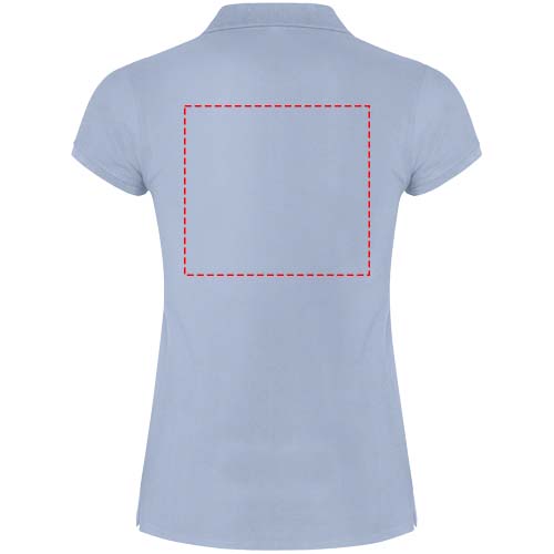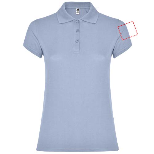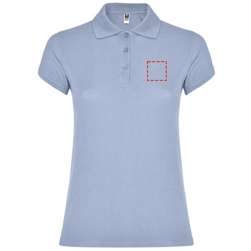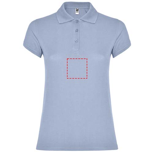 Kurzärmeliges Poloshirt für Damen. Verstärkte und verdeckte Nähte am Innenkragen. 1x1 Rippstrickbündchen an Ärmeln und Kragen. Seitennähte. 3-Knopfleiste und Seitenschlitze. Optionale Tasche. Herausnehmbares Etikett. Das Modell ist 179 cm groß und trägt Größe S.