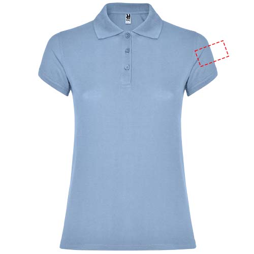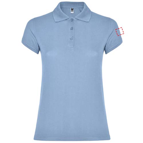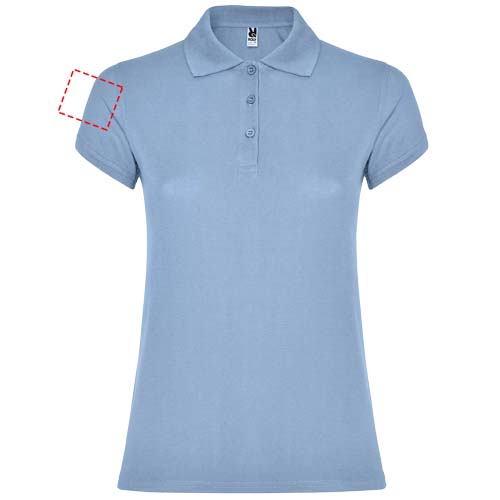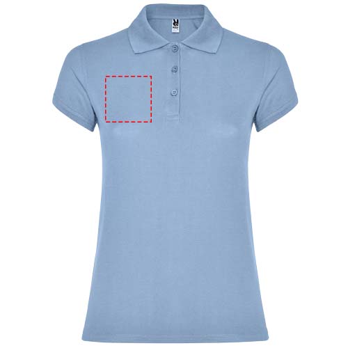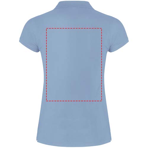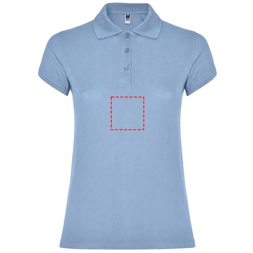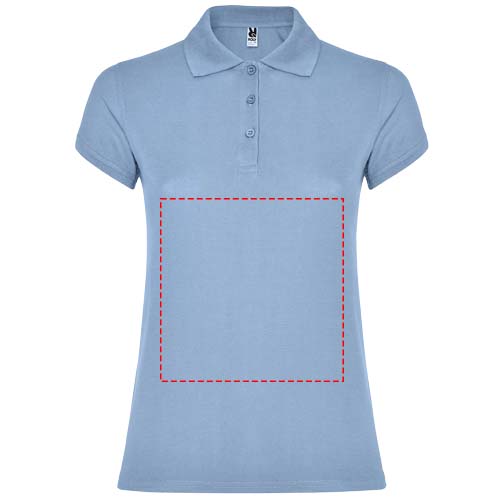 Kurzärmeliges Poloshirt für Damen. Verstärkte und verdeckte Nähte am Innenkragen. 1x1 Rippstrickbündchen an Ärmeln und Kragen. Seitennähte. 3-Knopfleiste und Seitenschlitze. Optionale Tasche. Herausnehmbares Etikett. Das Modell ist 179 cm groß und trägt Größe S.