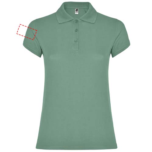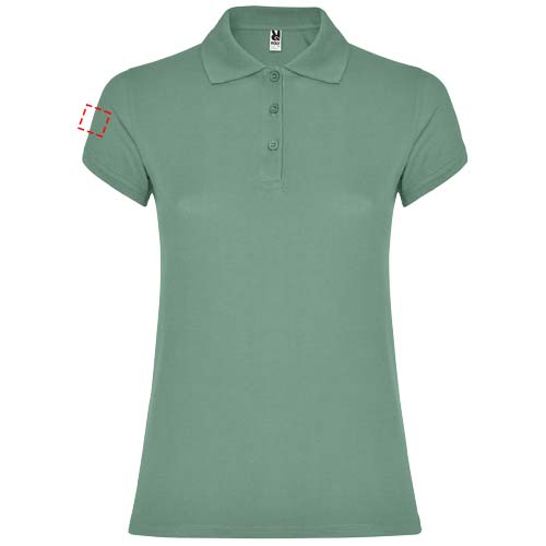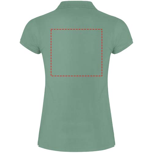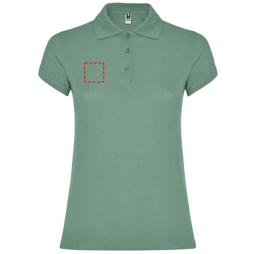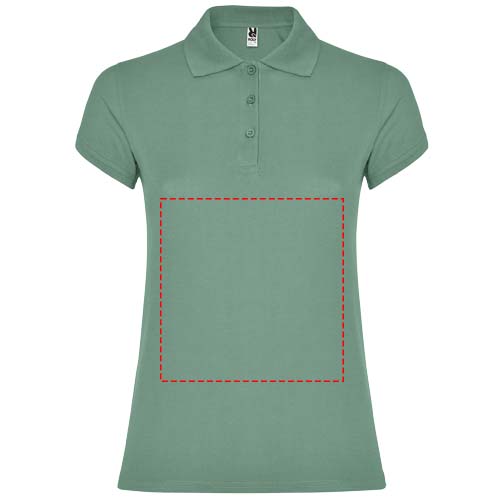 Kurzärmeliges Poloshirt für Damen. Verstärkte und verdeckte Nähte am Innenkragen. 1x1 Rippstrickbündchen an Ärmeln und Kragen. Seitennähte. 3-Knopfleiste und Seitenschlitze. Optionale Tasche. Herausnehmbares Etikett. Das Modell ist 179 cm groß und trägt Größe S.
