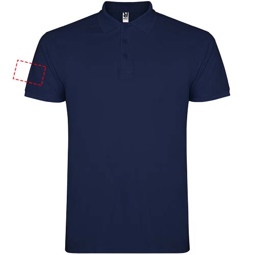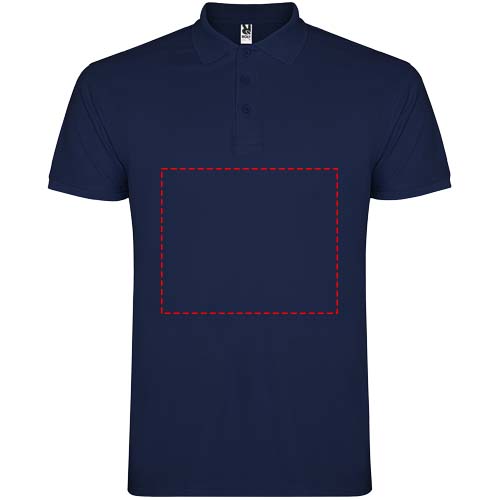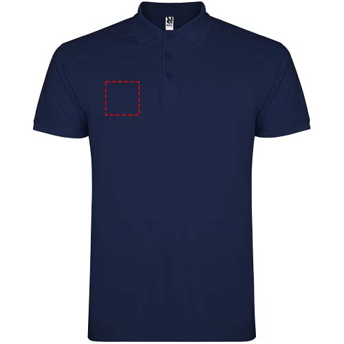 Kurzärmeliges Poloshirt für Herren. Verstärkte und verdeckte Nähte am Innenkragen. 1x1 Rippstrickbündchen an Ärmeln und Kragen. Seitennähte. 3-Knopfleiste und Seitenschlitze. Optionale Tasche. Herausnehmbares Etikett. Das Modell ist 185 cm groß und trägt Größe L.