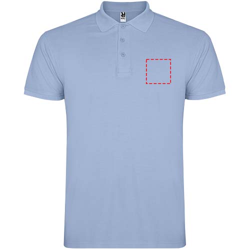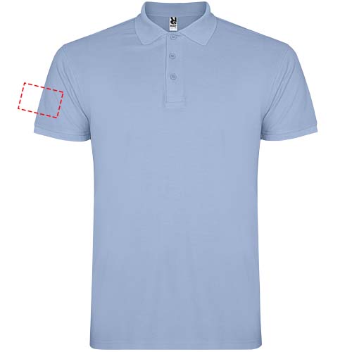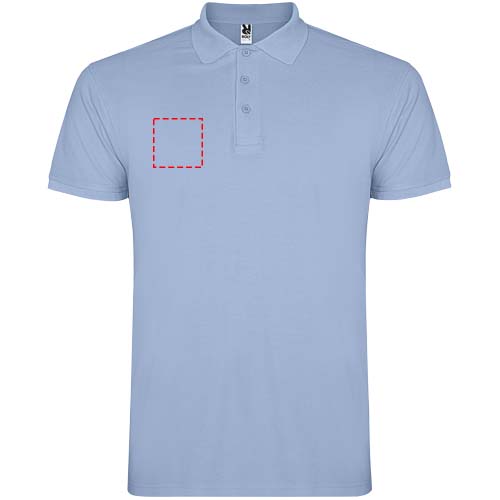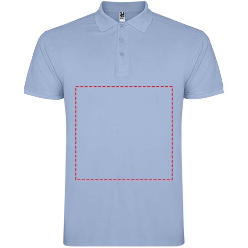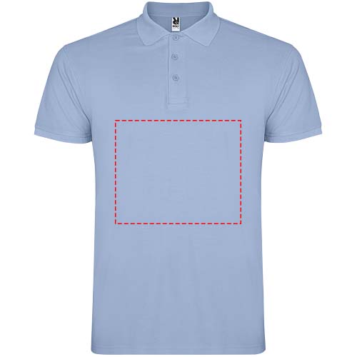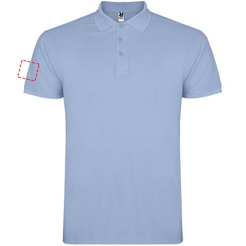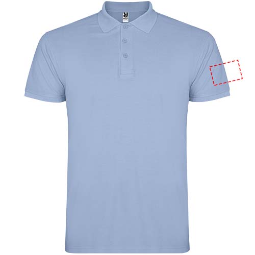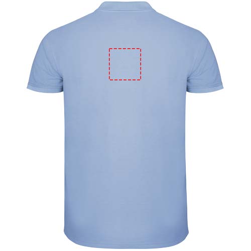 Kurzärmeliges Poloshirt für Herren. Verstärkte und verdeckte Nähte am Innenkragen. 1x1 Rippstrickbündchen an Ärmeln und Kragen. Seitennähte. 3-Knopfleiste und Seitenschlitze. Optionale Tasche. Herausnehmbares Etikett. Das Modell ist 185 cm groß und trägt Größe L.