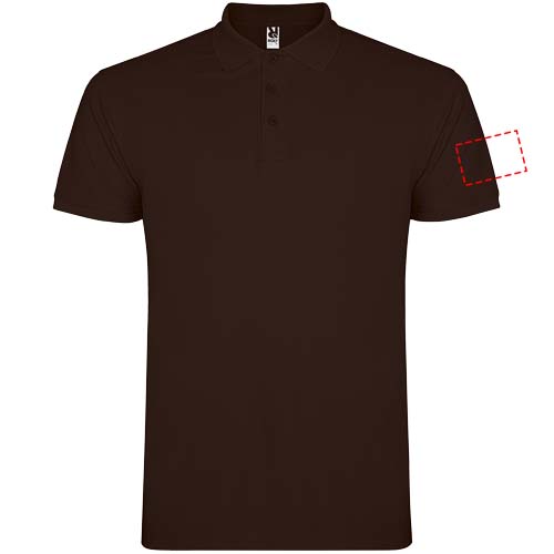 Kurzärmeliges Poloshirt für Herren. Verstärkte und verdeckte Nähte am Innenkragen. 1x1 Rippstrickbündchen an Ärmeln und Kragen. Seitennähte. 3-Knopfleiste und Seitenschlitze. Optionale Tasche. Herausnehmbares Etikett. Das Modell ist 185 cm groß und trägt Größe L.