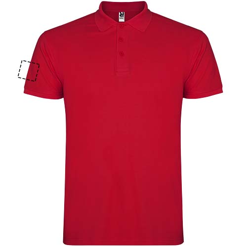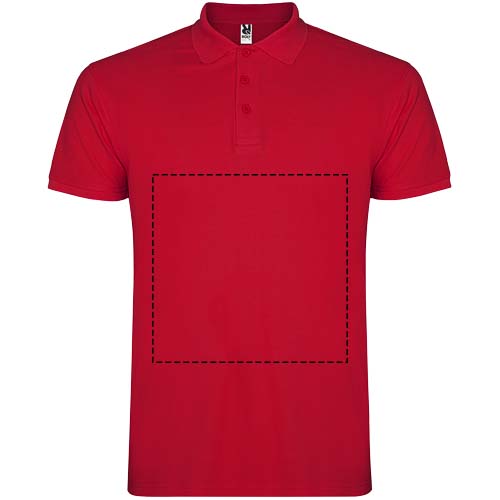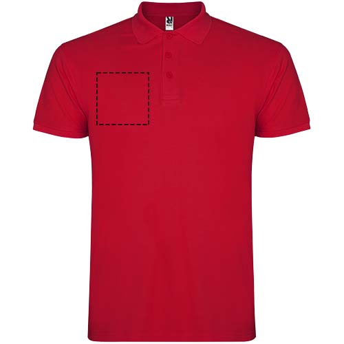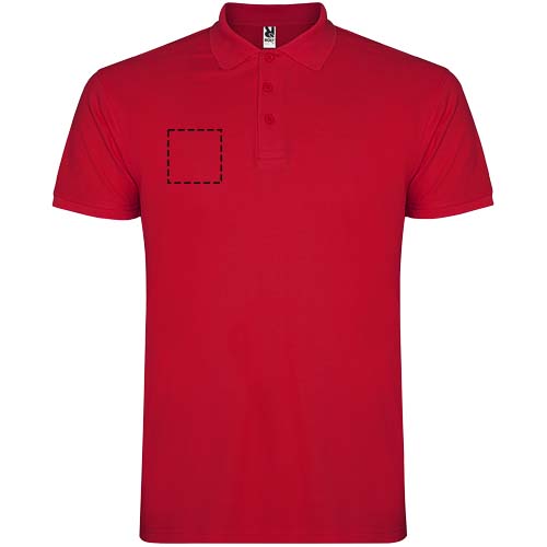 Kurzärmeliges Poloshirt für Herren. Verstärkte und verdeckte Nähte am Innenkragen. 1x1 Rippstrickbündchen an Ärmeln und Kragen. Seitennähte. 3-Knopfleiste und Seitenschlitze. Optionale Tasche. Herausnehmbares Etikett. Das Modell ist 185 cm groß und trägt Größe L.