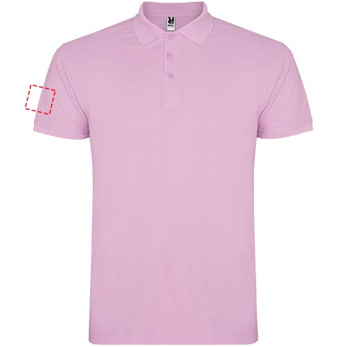 Kurzärmeliges Poloshirt für Herren. Verstärkte und verdeckte Nähte am Innenkragen. 1x1 Rippstrickbündchen an Ärmeln und Kragen. Seitennähte. 3-Knopfleiste und Seitenschlitze. Optionale Tasche. Herausnehmbares Etikett. Das Modell ist 185 cm groß und trägt Größe L.