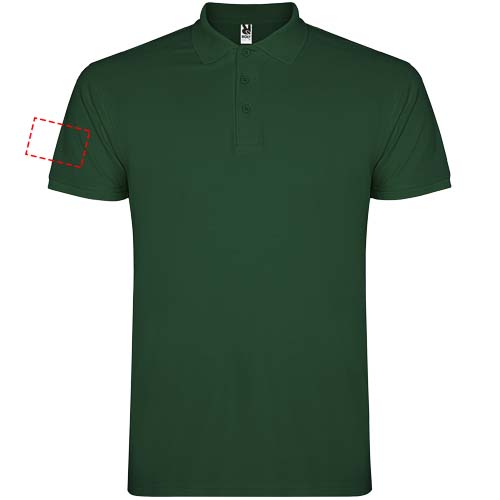 Kurzärmeliges Poloshirt für Herren. Verstärkte und verdeckte Nähte am Innenkragen. 1x1 Rippstrickbündchen an Ärmeln und Kragen. Seitennähte. 3-Knopfleiste und Seitenschlitze. Optionale Tasche. Herausnehmbares Etikett. Das Modell ist 185 cm groß und trägt Größe L.