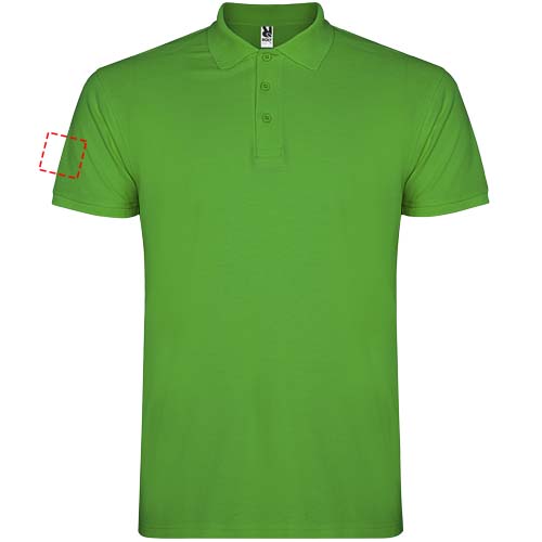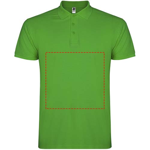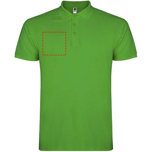 Kurzärmeliges Poloshirt für Herren. Verstärkte und verdeckte Nähte am Innenkragen. 1x1 Rippstrickbündchen an Ärmeln und Kragen. Seitennähte. 3-Knopfleiste und Seitenschlitze. Optionale Tasche. Herausnehmbares Etikett. Das Modell ist 185 cm groß und trägt Größe L.