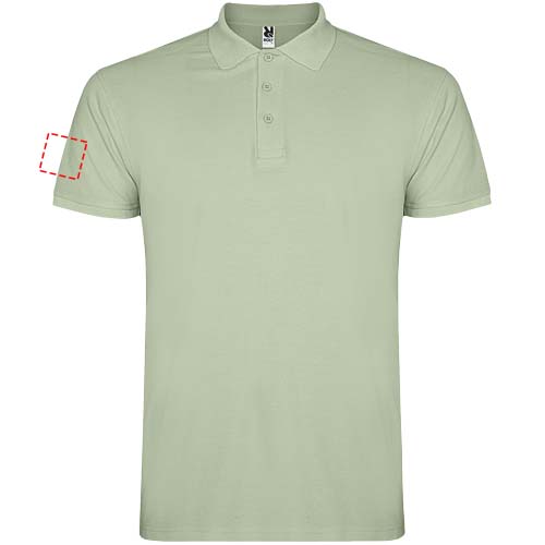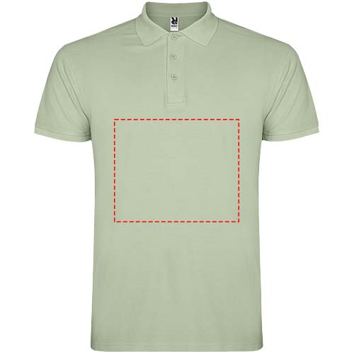 Kurzärmeliges Poloshirt für Herren. Verstärkte und verdeckte Nähte am Innenkragen. 1x1 Rippstrickbündchen an Ärmeln und Kragen. Seitennähte. 3-Knopfleiste und Seitenschlitze. Optionale Tasche. Herausnehmbares Etikett. Das Modell ist 185 cm groß und trägt Größe L.