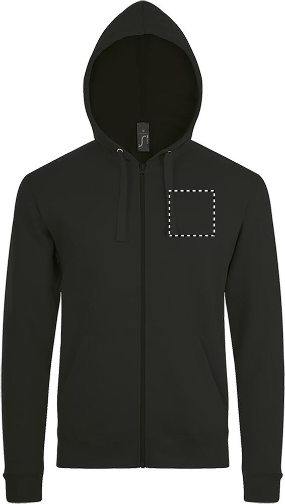 SOL'S STONE Unisex, Hoodie/Kapuzenjacke mit durchgehendem Reißverschluss und 2 Känguru-Taschen auf der Vorderseite. Kapuze mit Ton-in-Ton-Kordelzug, Rippenbündchen am Saum und an den Ärmeln. Seitennähte. No Label. Material: 260g/m², angerautes Material aus 50 % Baumwolle - 50 % Polyester.