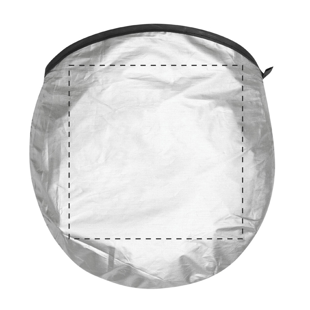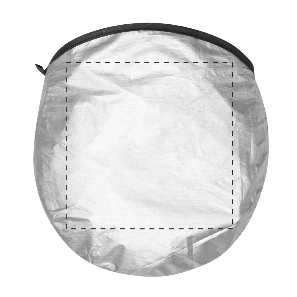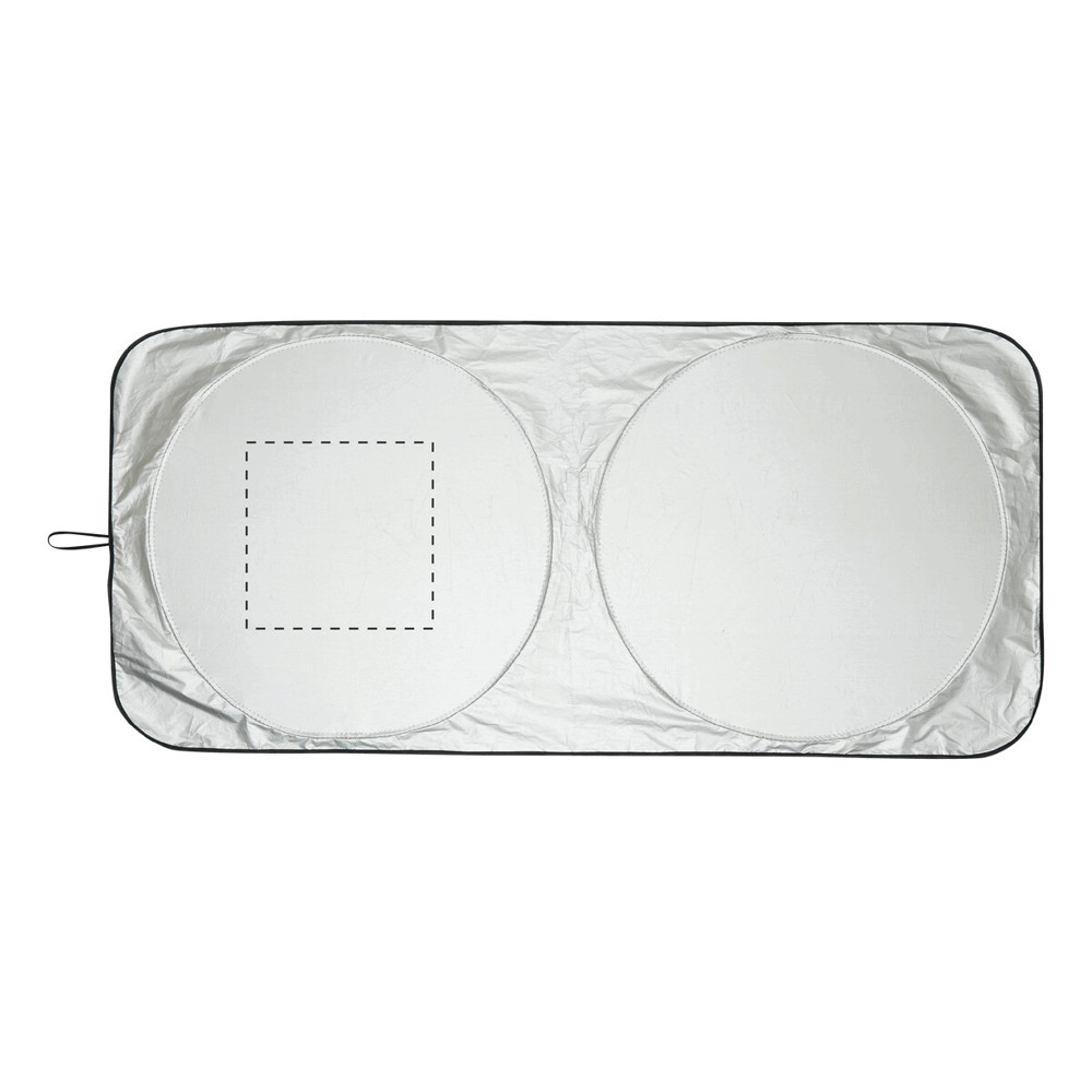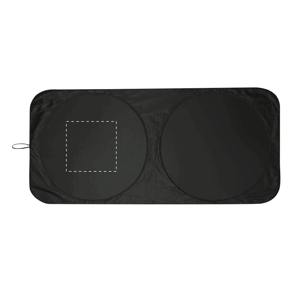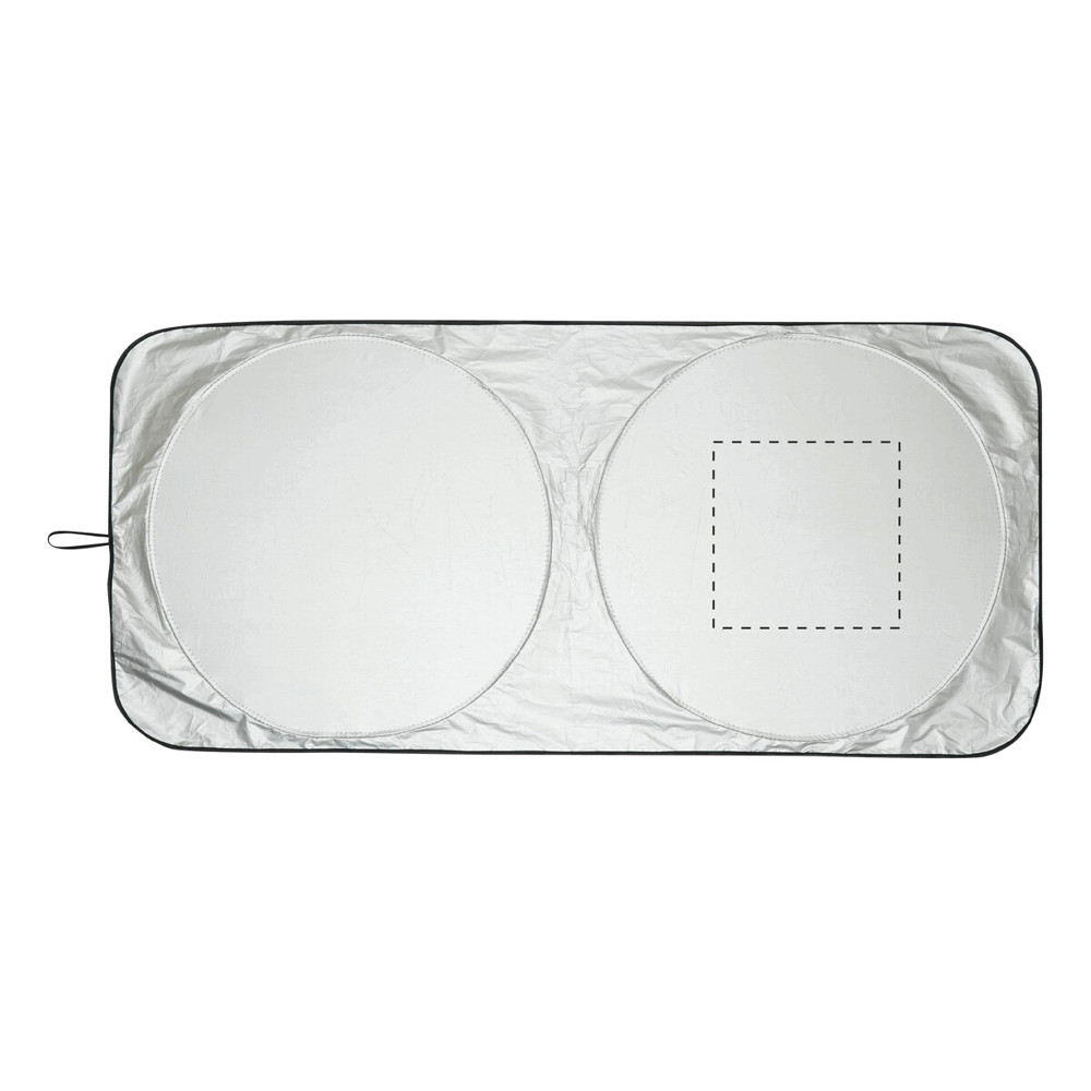 Auto-Sonnenschutz SUN SHIELD: silberne Oberfläche mit schwarzer Rückseite, bei Nichtgebrauch durch Gummischlaufe platzsparend faltbar, inkl. Aufbewahrungstasche