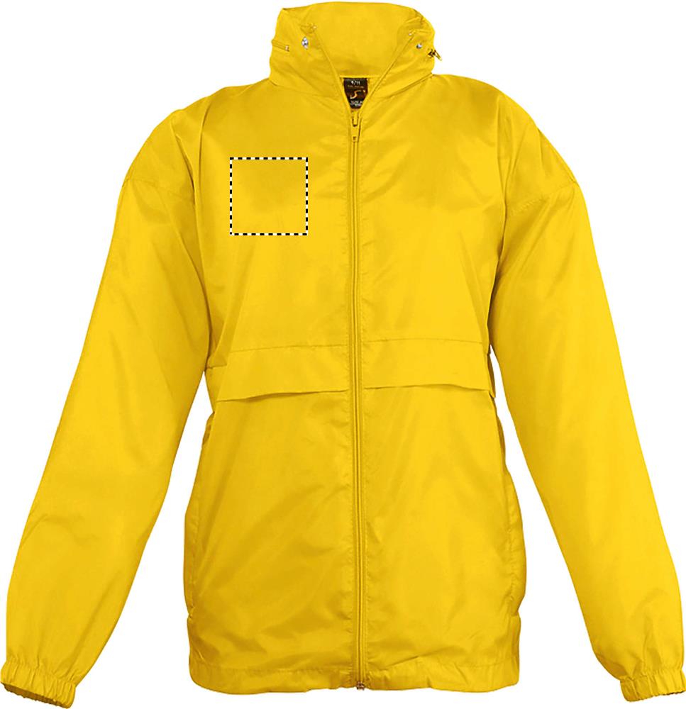 SOL'S SURF Kinder Windbreaker mit Reißverschluss. Einer der günstigsten Windbreaker auf dem Markt. Winddicht und wasserabweisend. Kragen mit Reißverschluss zum Verstauen der Kapuze, Kordelzug am Saum, elastische Bündchen, Belüftungsösen. Zwei Reißverschlusstaschen, die rechte Tasche dient zum Verstauen der gefalteten Windjacke, mit elastischem Gürtel. Material: 210g/m² 100% Nylon 210T. Größen: 5-6 Jahre: 105-116 cm (XL), 7-8 Jahre: 117-128 cm (XXL), 9-11 Jahre: 129-141 cm (3XL), 12-14 Jahre: 142-164 cm (4XL), 15-16 Jahre.: 165-176 cm (5XL)