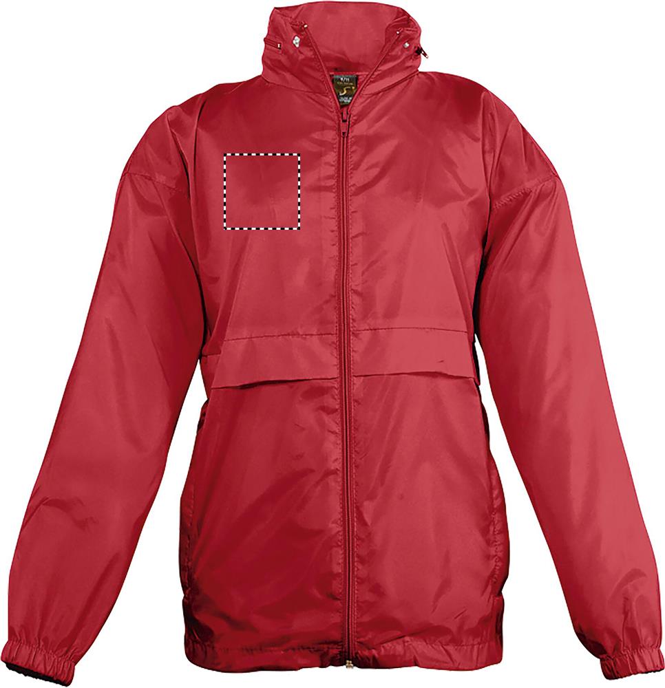 SOL'S SURF Kinder Windbreaker mit Reißverschluss. Einer der günstigsten Windbreaker auf dem Markt. Winddicht und wasserabweisend. Kragen mit Reißverschluss zum Verstauen der Kapuze, Kordelzug am Saum, elastische Bündchen, Belüftungsösen. Zwei Reißverschlusstaschen, die rechte Tasche dient zum Verstauen der gefalteten Windjacke, mit elastischem Gürtel. Material: 210g/m² 100% Nylon 210T. Größen: 5-6 Jahre: 105-116 cm (XL), 7-8 Jahre: 117-128 cm (XXL), 9-11 Jahre: 129-141 cm (3XL), 12-14 Jahre: 142-164 cm (4XL), 15-16 Jahre.: 165-176 cm (5XL)