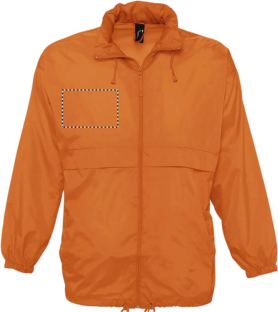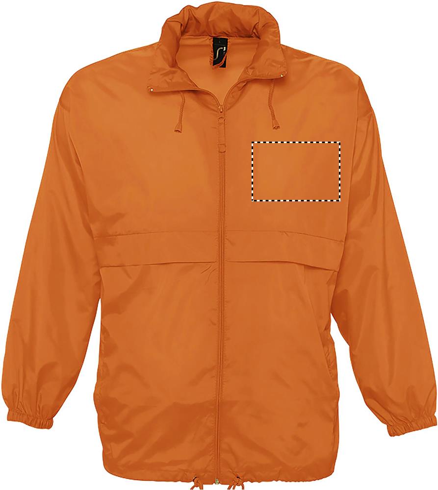 SOL'S SURF, Unisex wasserabweisender Windbreaker, 100% Polyamid 210T, durchgehender Reißverschluss, Kapuze mit Kordelzug im Kragen gefaltet, 2 Außentaschen mit Reißverschluss, ''In Bag'' Faltsystem mit elastischen Taillengurten, elastische Ärmelbündchen, Belüftungsösen. Um Ihre passende Größe zu finden, beachten Sie bitte die Größentabelle unter Details/Size Chart.
