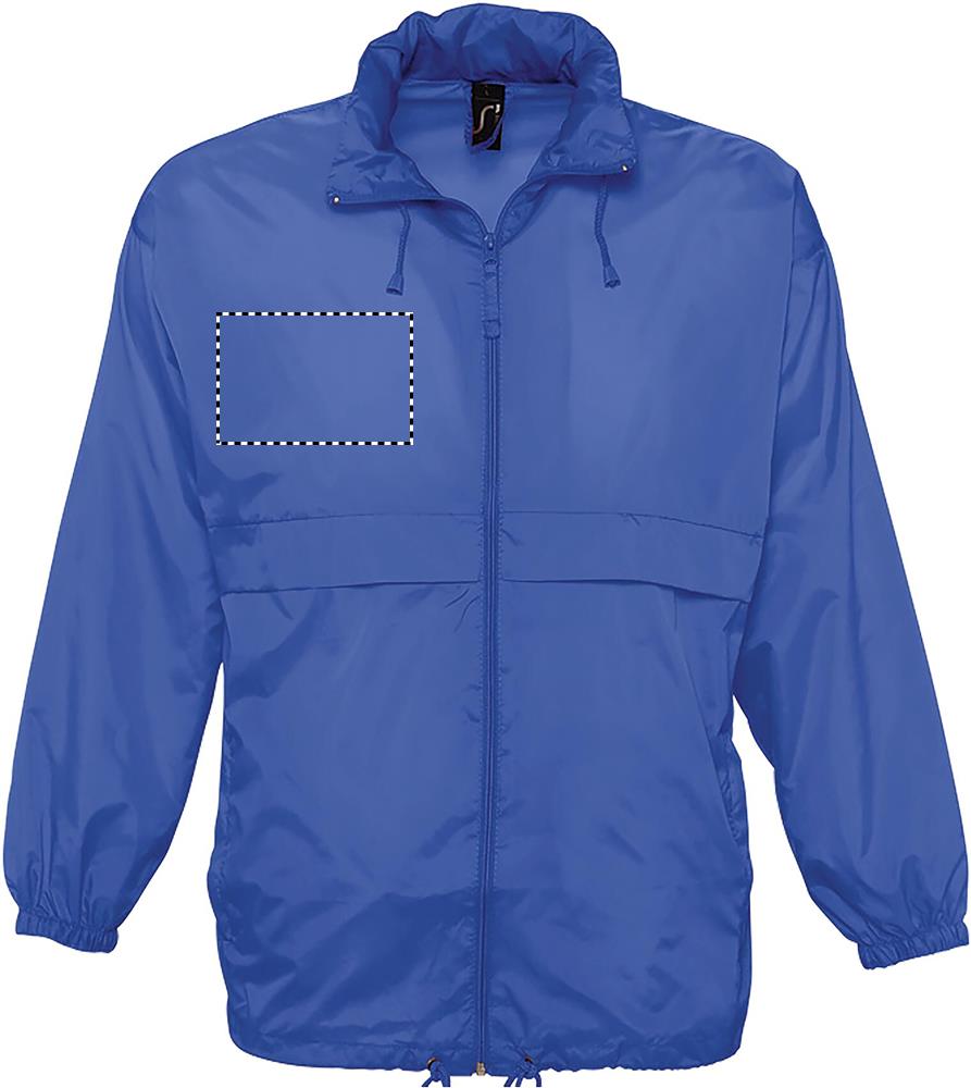 SOL'S SURF, Unisex wasserabweisender Windbreaker, 100% Polyamid 210T, durchgehender Reißverschluss, Kapuze mit Kordelzug im Kragen gefaltet, 2 Außentaschen mit Reißverschluss, ''In Bag'' Faltsystem mit elastischen Taillengurten, elastische Ärmelbündchen, Belüftungsösen. Um Ihre passende Größe zu finden, beachten Sie bitte die Größentabelle unter Details/Size Chart.