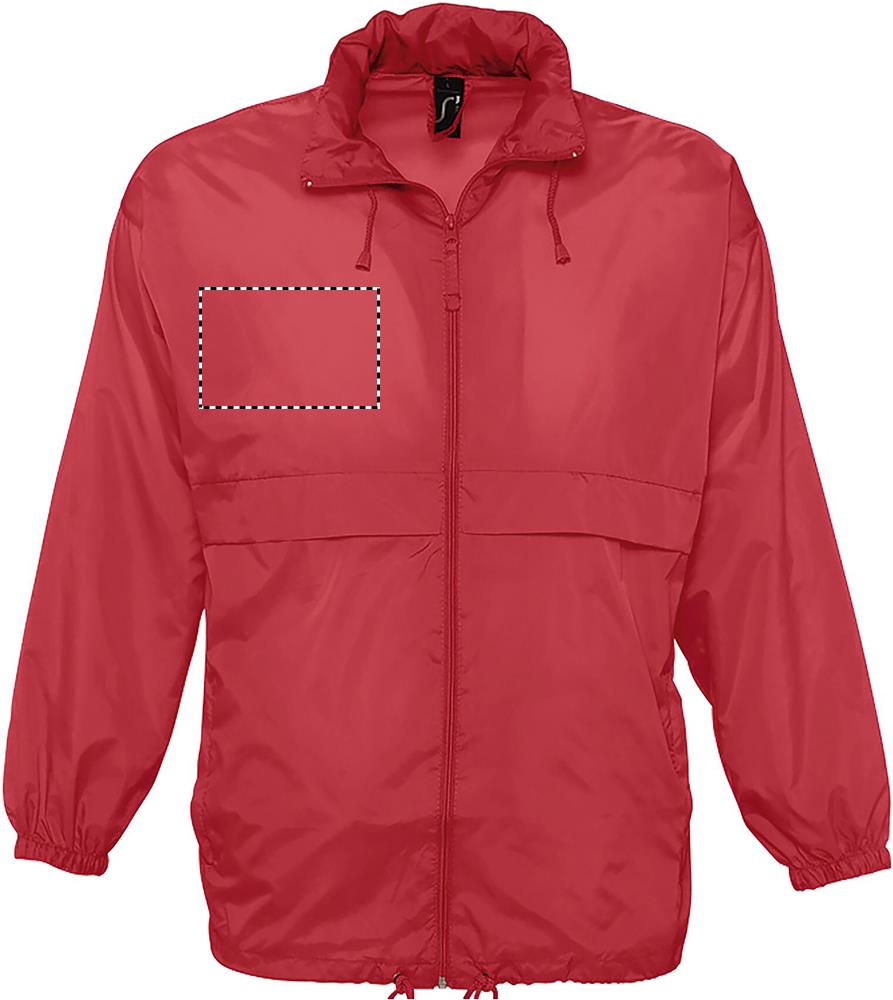 SOL'S SURF, Unisex wasserabweisender Windbreaker, 100% Polyamid 210T, durchgehender Reißverschluss, Kapuze mit Kordelzug im Kragen gefaltet, 2 Außentaschen mit Reißverschluss, ''In Bag'' Faltsystem mit elastischen Taillengurten, elastische Ärmelbündchen, Belüftungsösen. Um Ihre passende Größe zu finden, beachten Sie bitte die Größentabelle unter Details/Size Chart.