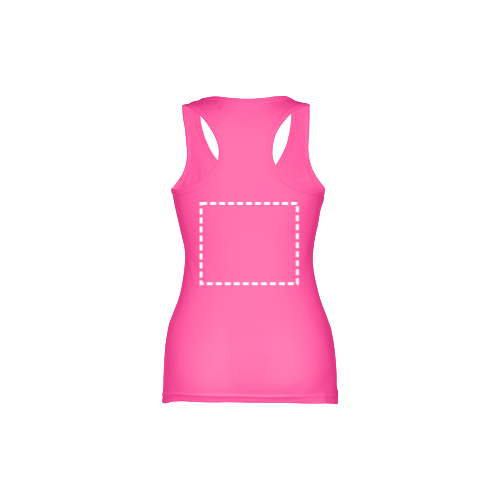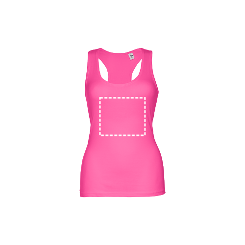 Damen Tank Top aus 100% Strickjersey und Baumwolle (160g/m²) mit kardiertem Baumwollfaden und" T"-Ausschnitt am Rücken. Doppelnaht am Saum, an den Armlöchern und Ausschnitt. Größen: S, M, L, XL, XXL