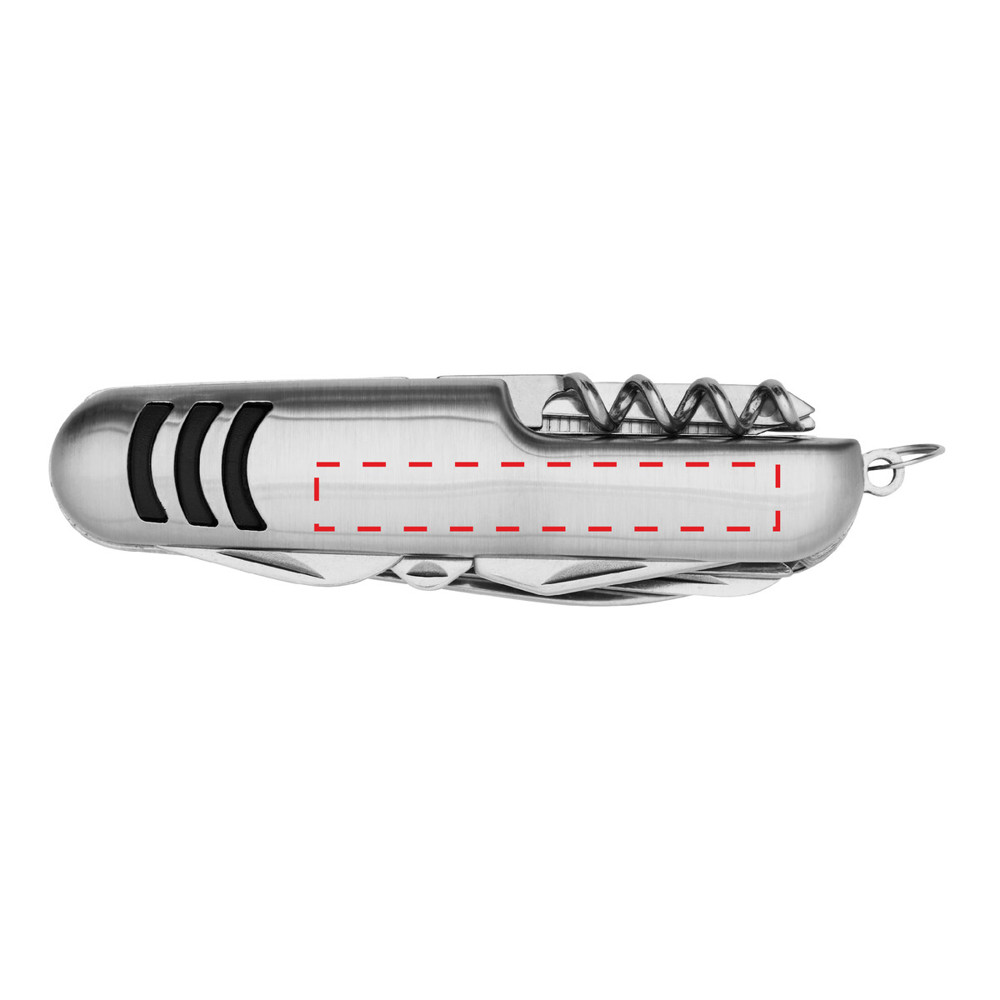 Taschenmesser TRIO in Streifen-Optik: mit Dosenöffner, Flaschenöffner, Korkenzieher, Nagelfeile, Kreuzschlitzschraubendreher, Schere, Säge, Entschupper, Lochstecher, Ahle mit Schlüsselring, in Box
