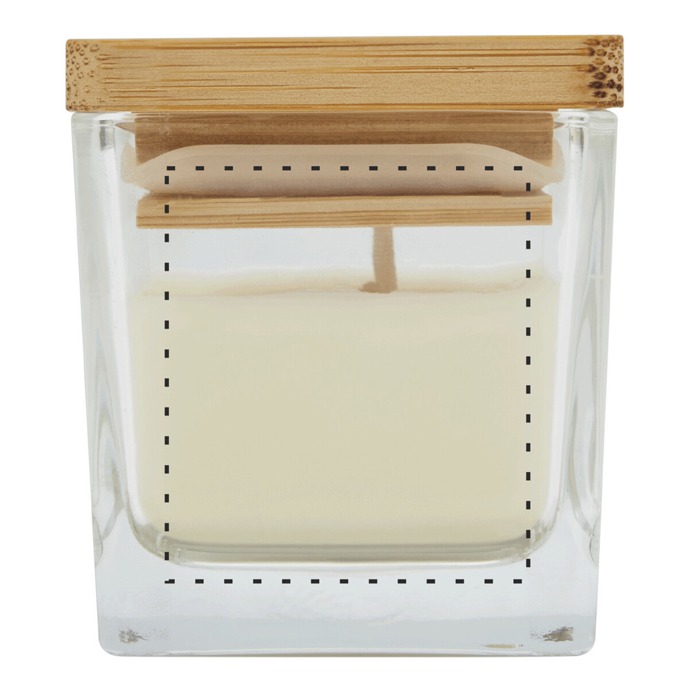 Duftkerze GLOW: in quadratischem Glas, farbiges Wachs mit Vanille-Duft, abnehmbarer Bambusdeckel mit Silikon-Dichtring, Brenndauer ca. 8 Stunden, in Box