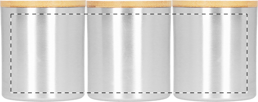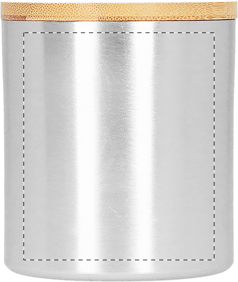 Vanille-Duftkerze in Behälter aus Aluminium mit Bambusdeckel.
