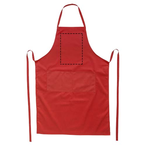 Ob mit oder ohne Logo, mit der Viera-Schürze ist es ein Leichtes, Kleidung beim Kochen zu schützen. Die Schürze besteht aus 240 g/m² Twill (65% Polyester und 35% Baumwolle), was sie dick und robust, aber dennoch weich und angenehm zu tragen macht. In den beiden Vordertaschen lassen sich Küchenutensilien schnell verstauen, und das 1 Meter lange Bindeband macht diese Schürze zu einer Einheitsgröße. Außerdem bietet die Viera-Schürze zahlreiche Möglichkeiten, ein beliebiges Logo anzubringen.