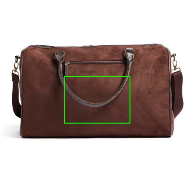 Geräumige Wochenendtasche, die sich perfekt für kürzere Ausflüge oder Exkursionen eignet. Die Tasche hat ein zeitloses und klassisches Design in Wildlederoptik und ist mit Messingdetails verziert. Sie können wählen oder variieren, wie Sie die Tasche tragen, entweder an den Griffen oder über die Schulter mit dem Schultergurt. Ein großartiger und leicht zu tragender Begleiter für die Tage, an denen Sie ständig unterwegs sind.