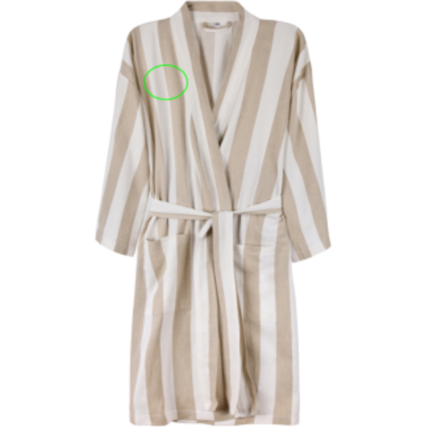Nehmen Sie diesen weichen und bequemen Hamam-Bademantel mit an den Strand oder genießen Sie ihn einfach zu Hause. Er ist aus einer leichten und luftigen 200g/m²-Mischung gefertigt und kombiniert den Komfort von Baumwolle mit den schnell trocknenden Vorteilen von Polyester. Das klassische Design mit zweifarbigem Streifenmuster verfügt über einen hübschen Kragen, Vordertaschen, 3/4-Ärmel und einen Taillengürtel für eine perfekte Passform. Die GRS-Zertifizierung (Global Recycled Standard) garantiert, dass die gesamte Lieferkette der recycelten Materialien zertifiziert ist. Der Gesamtanteil an recyceltem Material wird auf das Gesamtgewicht des Produkts bezogen. Dieses Produkt enthält 69% GRS-zertifiziert recycelte Baumwolle und 29% GRS-zertifiziert recyceltes Polyester.