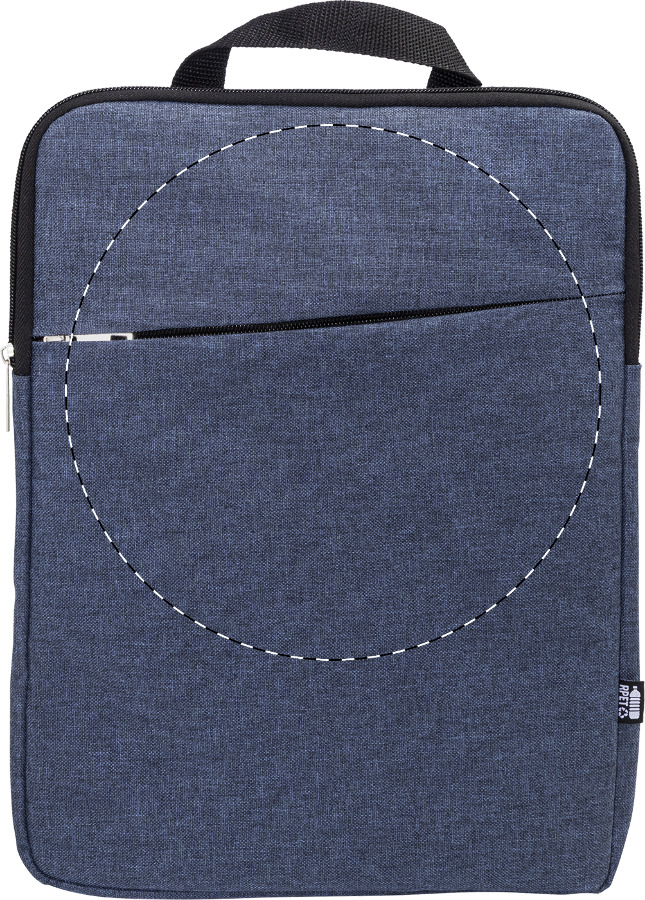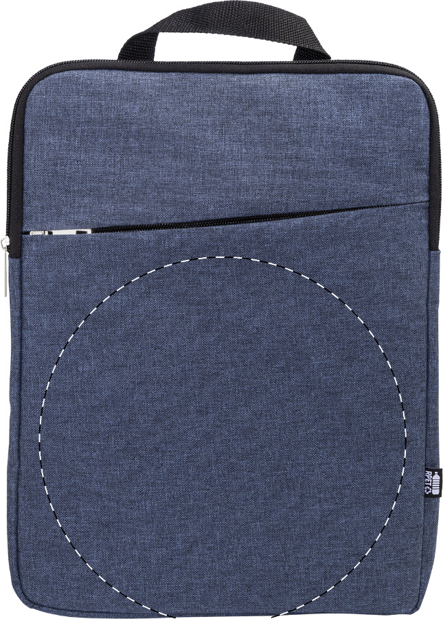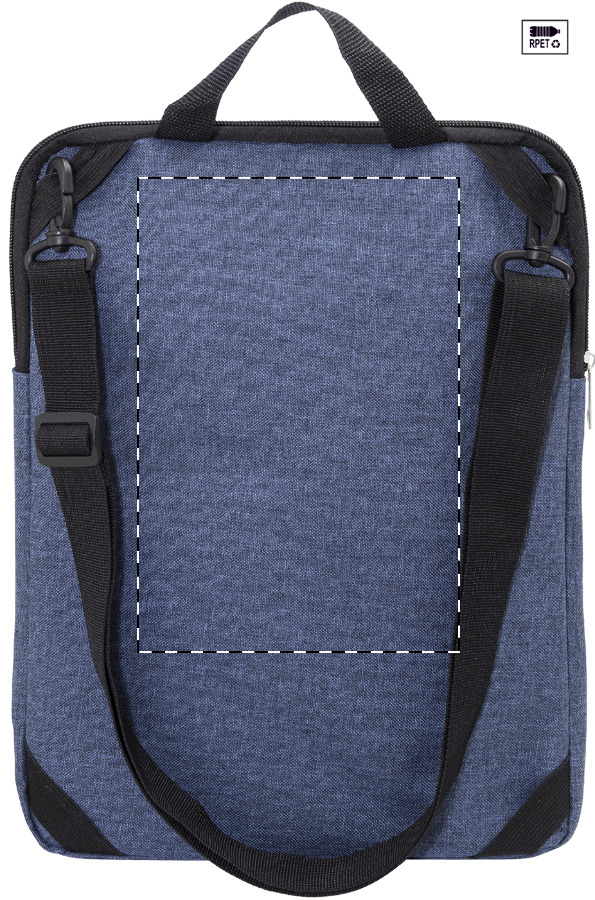 600D RPET-Polyester-gepolsterte Dokumenten- oder Laptop-Umhängetasche mit Reißverschlussfach und Reißverschlusstasche vorne. Für Laptops bis zu 15 Zoll geeignet. Mit verstellbarem Schultergurt, der vertikal und horizontal positioniert werden kann. Mit RPET-Label.