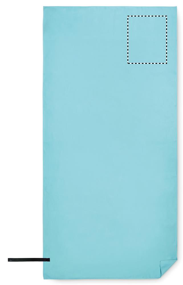 Sport- oder Strandtuch aus samtiger Mikrofaser 200 g/m². Gurt mit Druckknopf.