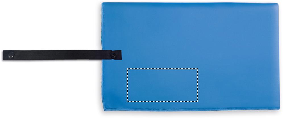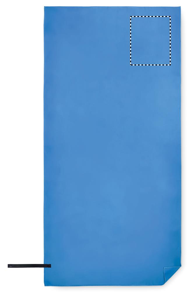 Sport- oder Strandtuch aus samtiger Mikrofaser 200 g/m². Gurt mit Druckknopf.