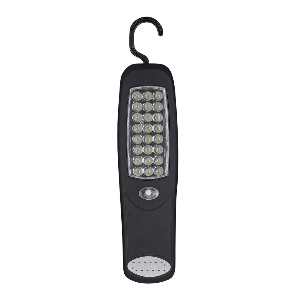 LED-Arbeitslampe WORKFLOW: mit 24 lichtstarken weißen LED, An- und Ausschalter, gummiertes Gehäuse, zwei Befestigungsmöglichkeiten - mit ausklappbarem Haken und Magnet auf der Rückseite, Metallplatte für Werbeanbringung, batteriebetrieben (3x AA Batterien nicht enthalten), in Box